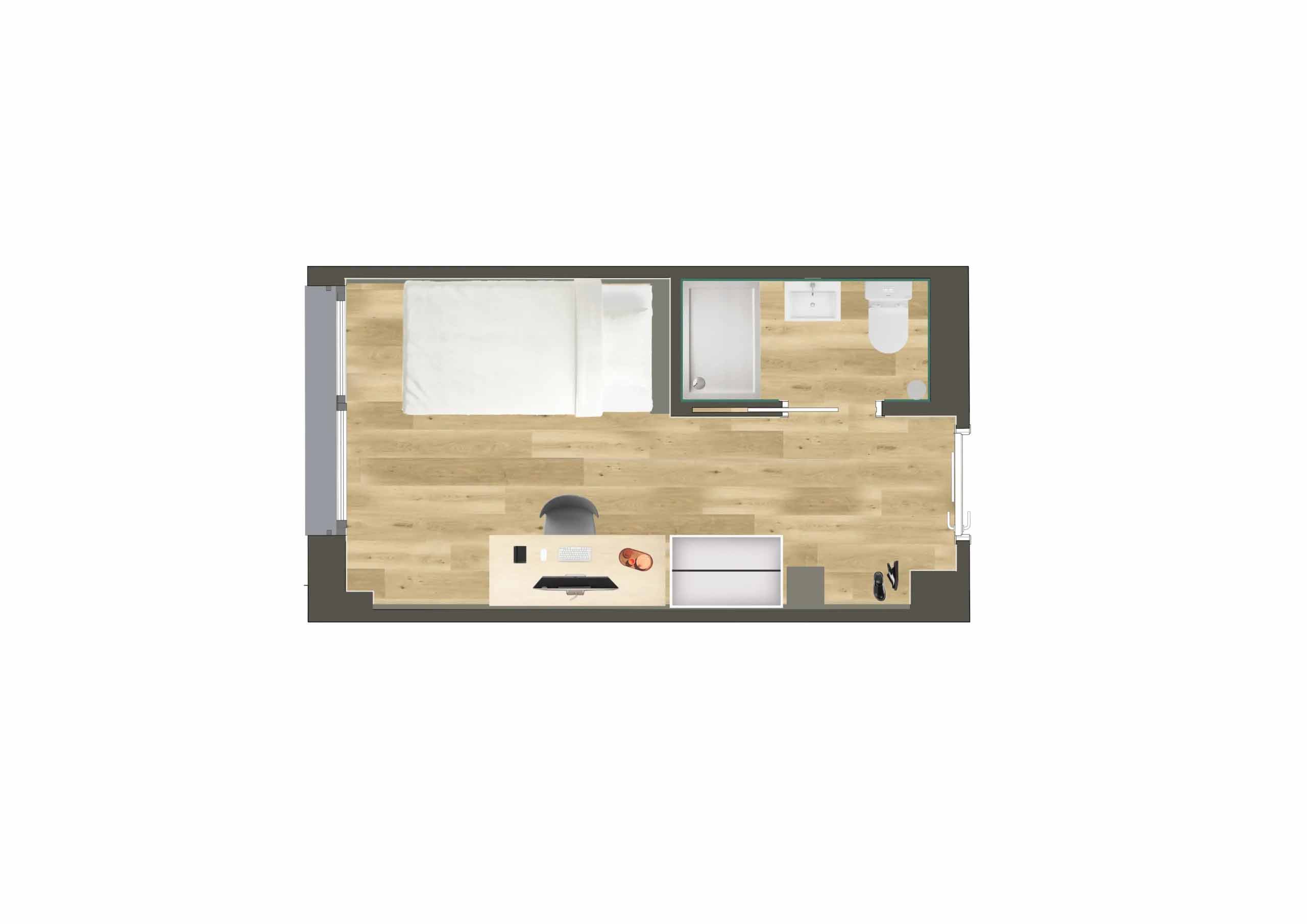 La residencia te proporciona ropa de cama y toallas (una de ducha, una de manos y un alfombrín). Te recomendamos traer perchas adicionales a las 5 que encontrarás en tu habitación y una toalla extra si practicas deporte con frecuencia.