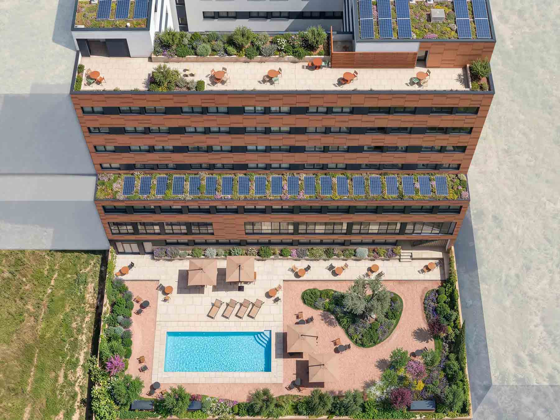 Residencia de estudiantes en Barcelona moderna, con piscina, a cinco minutos andando del mar y en el barrio más innovador de la ciudad. Camplus Poble Nou es la residencia universitaria que combina todo lo que Barcelona puede ofrecerte: una ubicación excepcional en el corazón del distrito tecnológico 22@, habitaciones y estudios completamente equipados con baño y cocina privados, zonas comunes de primer nivel y la esencia de comunidad y trato cercano que define a Camplus.