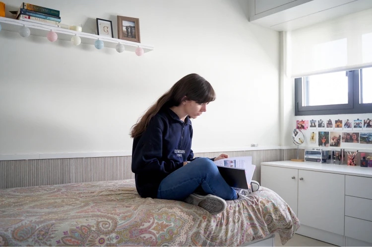 Tras su traslado en 2021, el Colegio se reubicó en un edificio rehabilitado y totalmente renovado . Cuenta con más de 50 habitaciones individuales, cada una con baño privado y mobiliario pensado para el estudio y descanso. Espacios comunes para el desarrollo académico y personal como salas de estudio luminosas, biblioteca, coworking, gimnasio, pista de pádel, piscina exterior, sala polivalente y capilla. Instalaciones prácticas: comedor con menú completo (lunes a domingo), lavadero y planchero, junto con parking para bicicletas y vehículos.