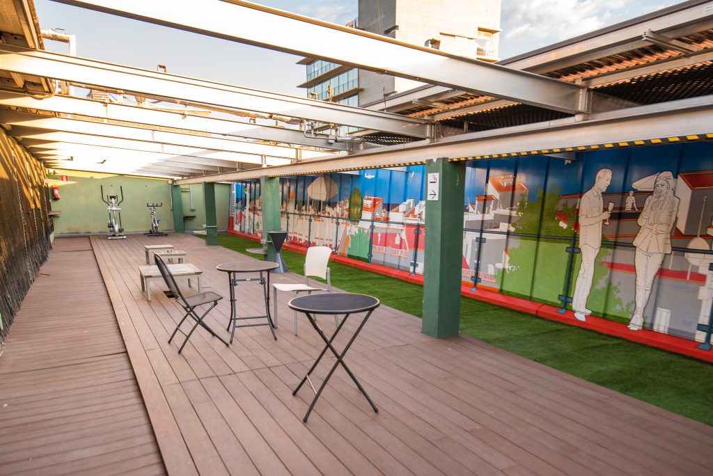 Gimnasio · Comedor · Biblioteca · Salas de estudio · Solarium · Auditorio · Polideportivo · Zona de juegos · Lavandería · Wifi de alta velocidad · Videovigilancia · Parking de moto y bici · Suministros incluidos · Actividades mensuales…y con el centro de Barcelona a solo 15 minutos.